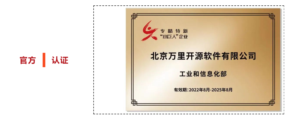 万里数据库专注基础软件研发超20年,凭借过硬的数据库技术创新实力与优秀的数据库产品及服务能力,通过层层审核筛选,最终被认定为国家级专精特新“小巨人”企业。