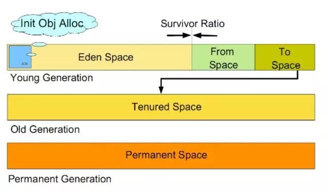 年轻代分三个区。一个 Eden 区,两个 Survivor 区(一般而言)。大部分对象在 Eden 区中生成。当 Eden 区满时,还存活的对象将被复制到 Survivor 区(两个中的一个),当这个 Survivor 区满时,此区的存活对象将被复制到另外一个Survivor 区,当这个 Survivor 去也满了的时候,从第一个 Survivor 区复制过来的并且此时还存活的对象,将被复制“年老区(Tenured)”。