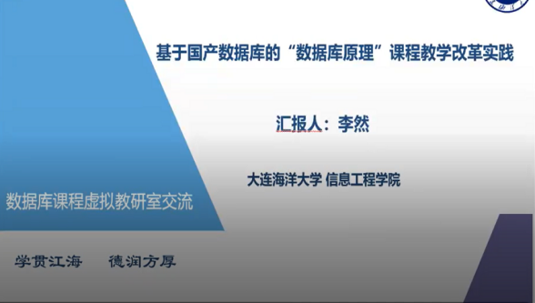 来自大连海洋大学的李然教授做了题为“基于国产数据库的数据库原理课程教学改革实践”的报告,分享了大连海洋大学基于华为鲲鹏欧拉&高斯人才发展加速计划在数据库教学中所做的改革实践方案及具体措施,从使用者的角度介绍了欧拉&高斯人才发展加速计划的加入流程,并对国产数据库教学建设进行了展望和规划。