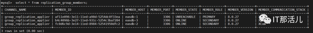 等MySQL选举完后,观察节点信息发现3节点成为主节点: