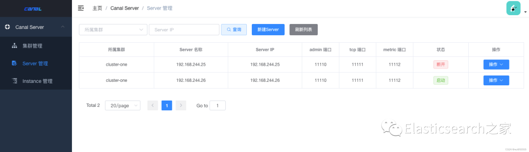 •集群:也就是一组canal服务端deployer,也称为Server,同一集群的Server的配置文件可以在admin中统一集中管理。也就是说admin是面向多集群的管理