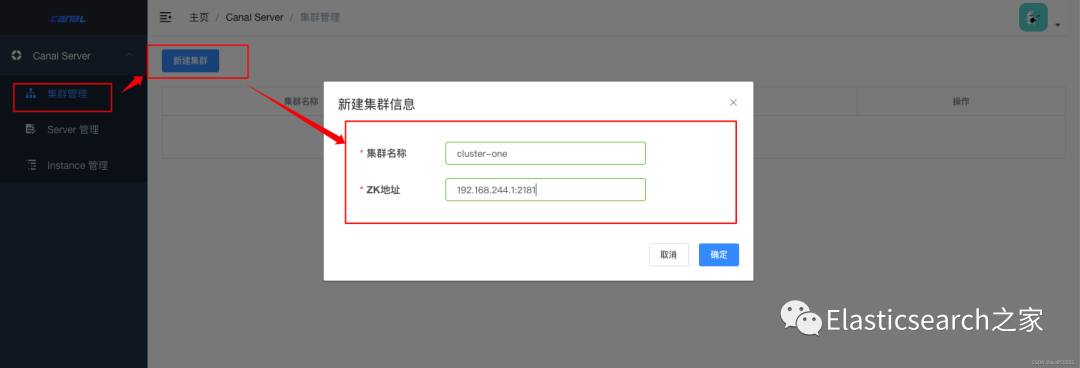 ,新建一个集群配置。这里的zk地址就是服务端集群的zk地址