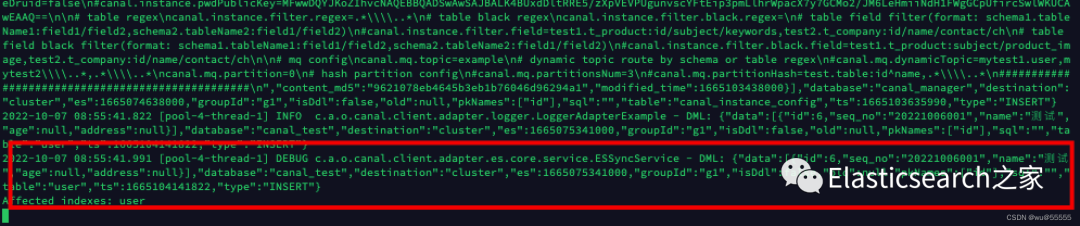 1、我这里的同步配置是基于canal搭建主从|集群架构[3]中搭建的环境的,实现的是基于集群的从mysql同步至es,所以我们在此基础上测试