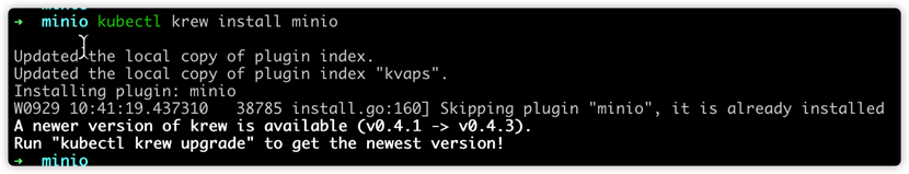 安装minio operator 我们可以选择helm 或者使用官方提供的kubectl minio 插件的方式,这里我们使用kubectl minio 插件的方式安装。