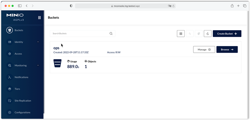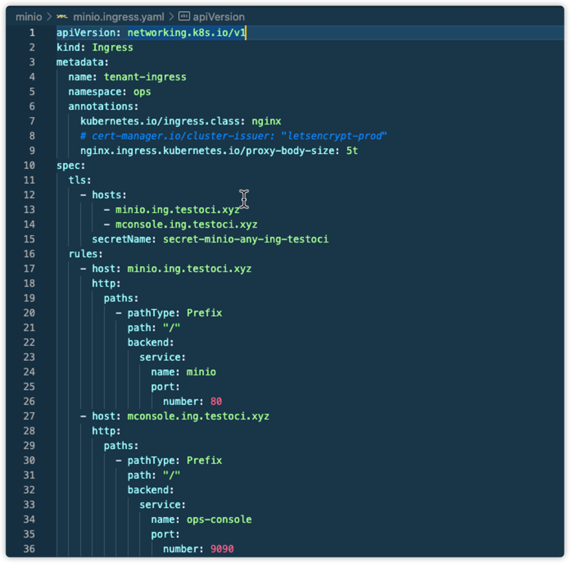 此文档中, 使用Ingress 暴露Minio 的API 服务和console服务, 在OKE集群中已经部署了Nginx Ingress Controller和CertManager,分别提供Servcie对外的访问,以及TLS证书的管理。