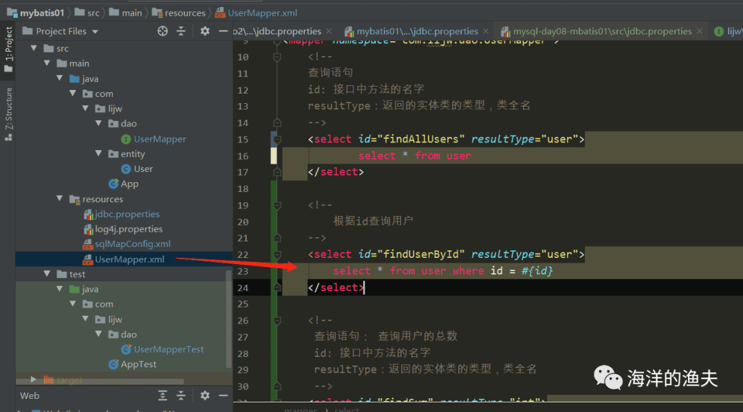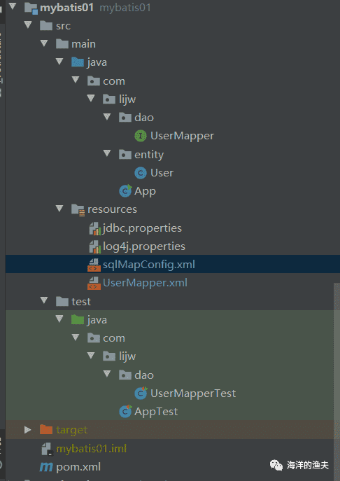 参考我之前的篇章《MyBatis入门案例》,搭建完毕之后的项目结构如下: