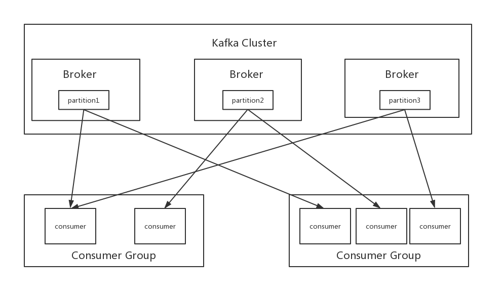 Consumer Group: 也是个逻辑上的概念,为一组consumer的集合,同一个topic的数据会广播给不同的group,同一个group中只有一个consumer能拿到这个数据