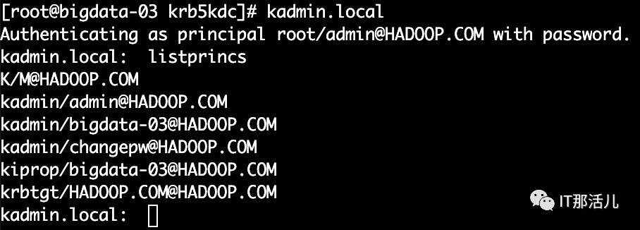 [root@bigdata-03 ~]# rm -f /var/kerberos/krb5kdc/principal*