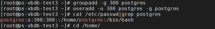 groupadd -g 300 postgres