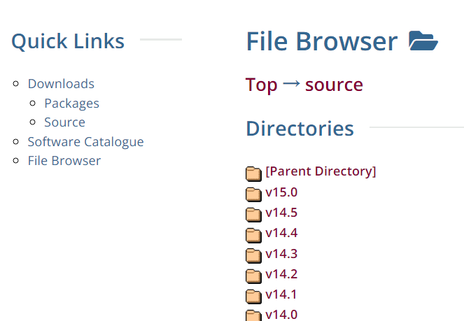下载postgresql的源码包:https://www.postgresql.org/ftp/source/,根据要安装的版本进行下载安装包。