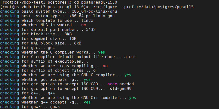 ./configure --prefix=/data/postgres/pgsql15
