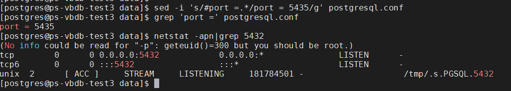 sed -i 's/#port =.*/port = 5435/g' postgresql.conf