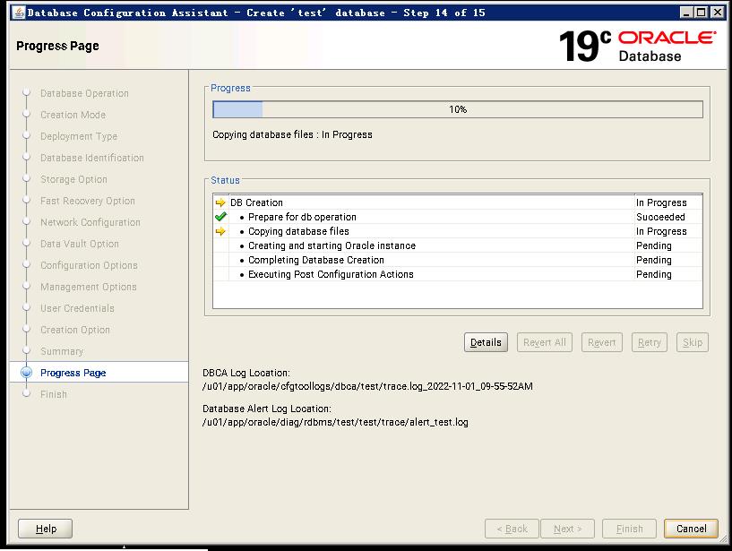 完成后运行dbca建库