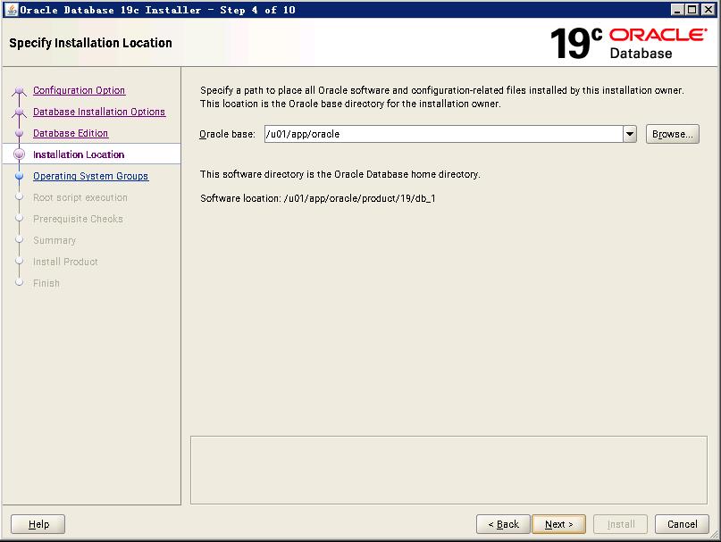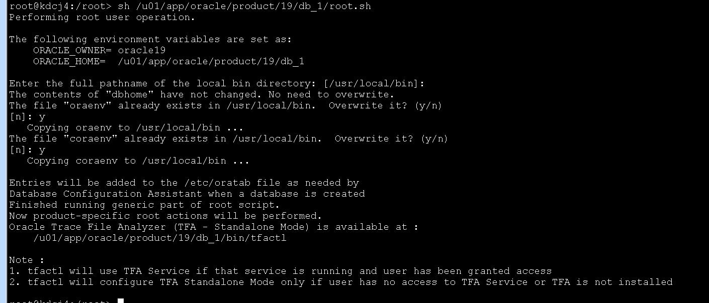root用户创建所需要的目录:mkdir -p /u01/app/oracle/product/19/db_1