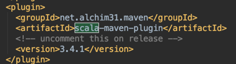 请在项目根目录下找到scala-maven-plugin,取消其版本注释,如下图: