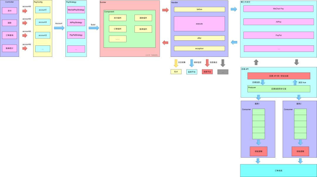 因此我在设计支付平台时使用了很多设计模式以及引入消息队列处理回调分发的问题,使得支付平台具备这几点特性。