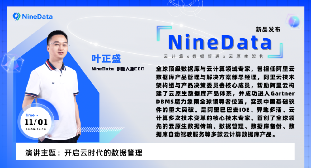 关于 NineData 的来源,Nine 是来自我们公司玖章算术的九字,Data 代表产品聚焦在数据领域。