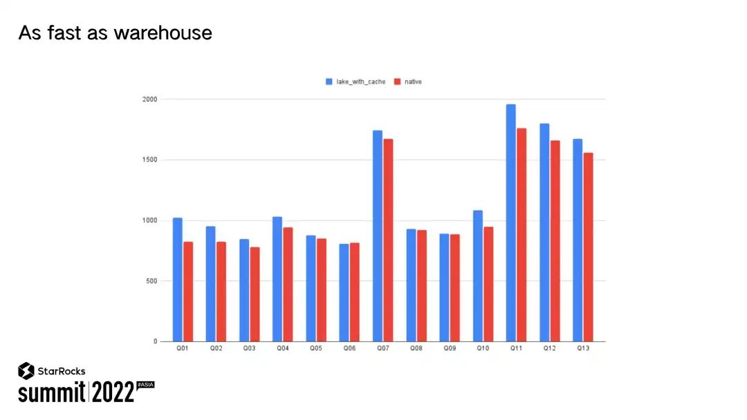 提到数据湖分析,用户总是觉得数据湖分析的性能会不如 OLAP 快。我们把 StarRocks 数据湖分析叫做极速数据湖分析。那到底有多极速呢?我们认为为用户提供跟仓一样性能的数据湖分析,就是极速数据湖分析。