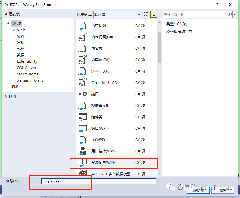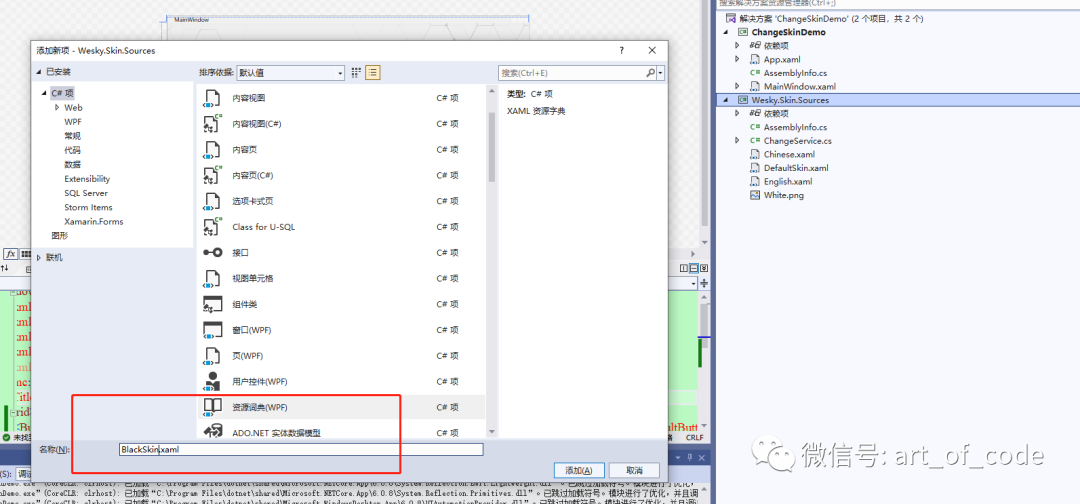 4、创建控件库类库项目 Wesky.Skin.Source,用来存放项目资源有关内容