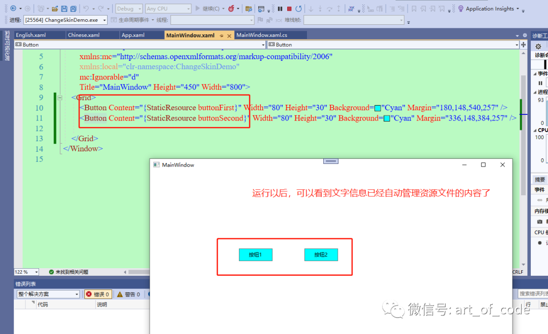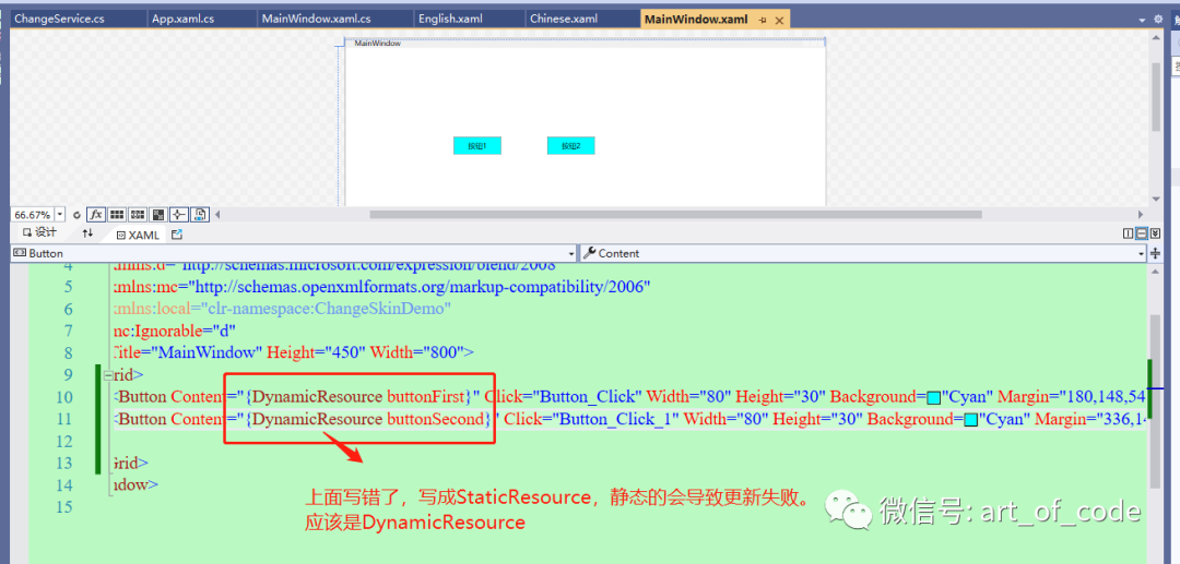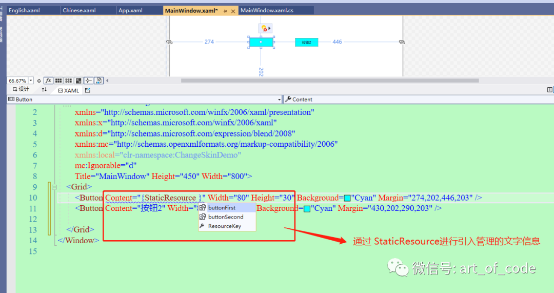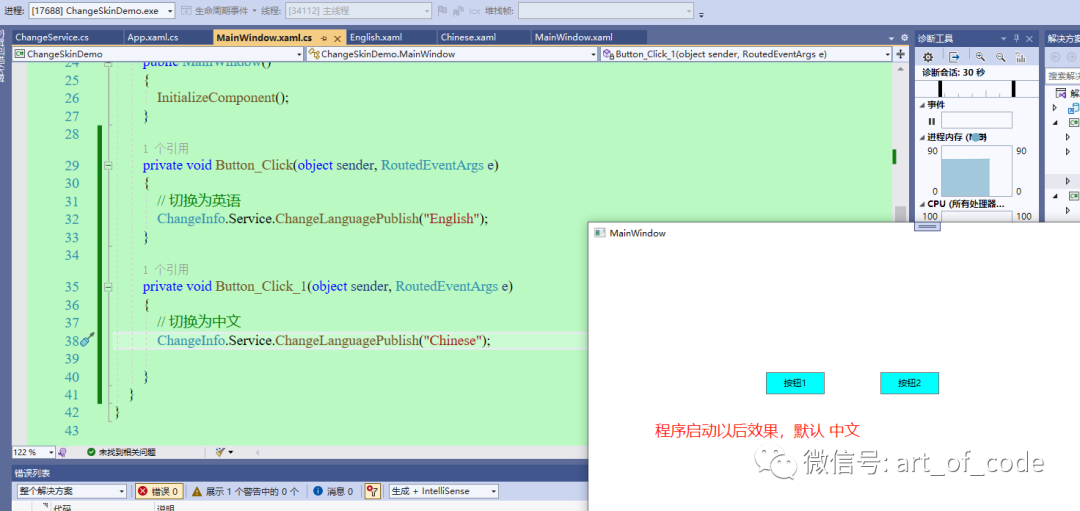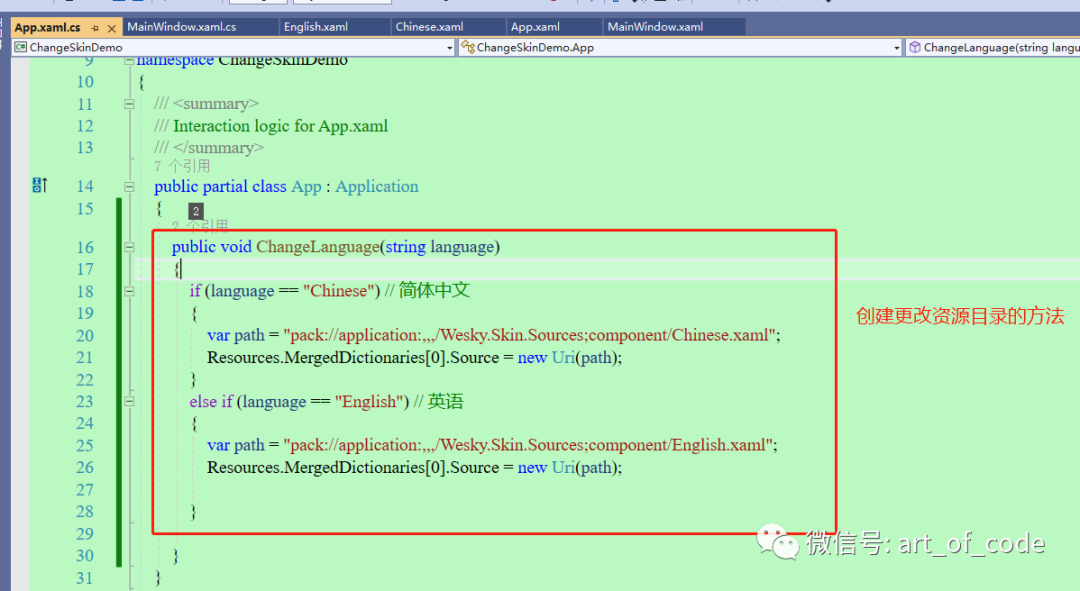 13、资源文件只能在App内实现,所以为了方便,就写到App.cs里面,实现一个切换中英文的功能