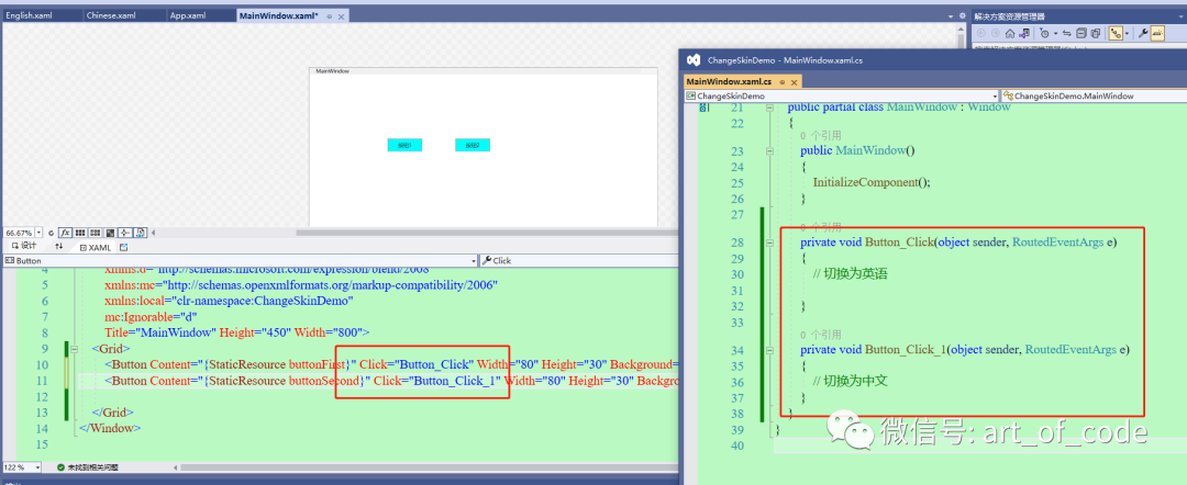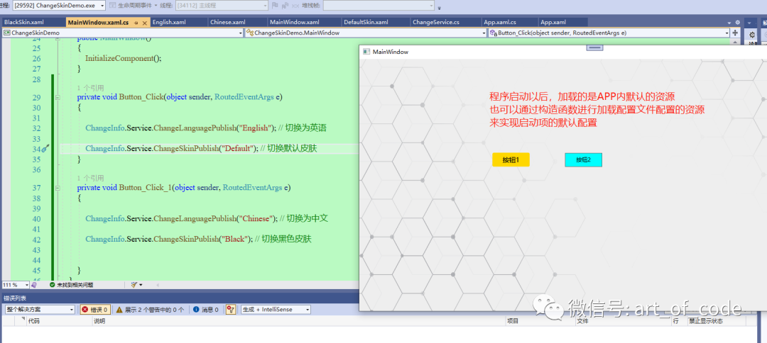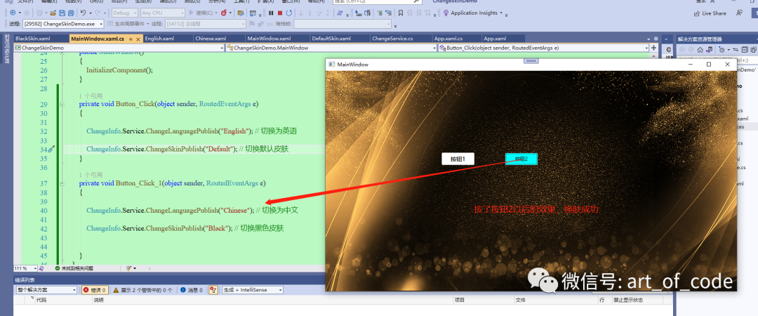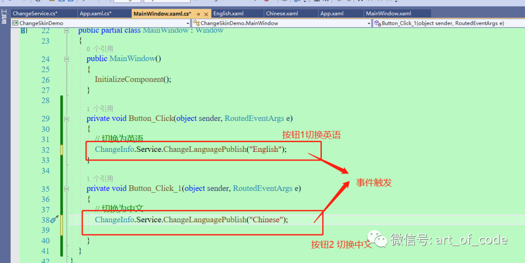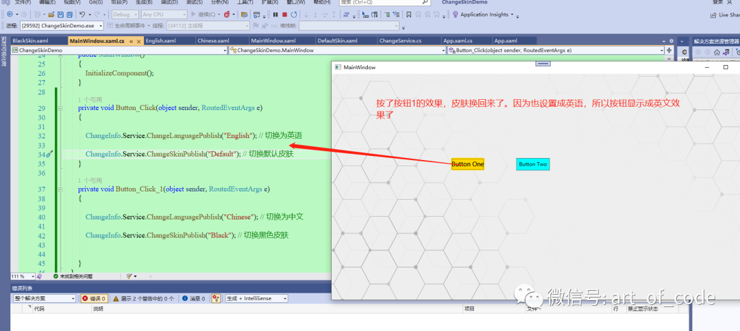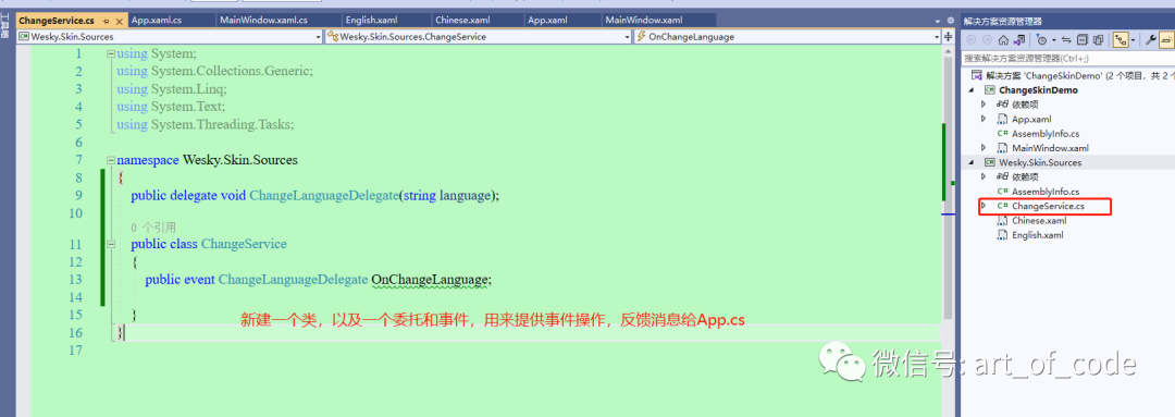 34、按照更换语言的方式,新主张一个更改皮肤的委托/事件。