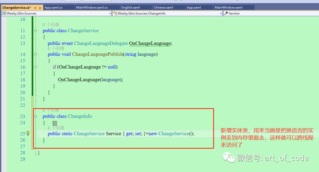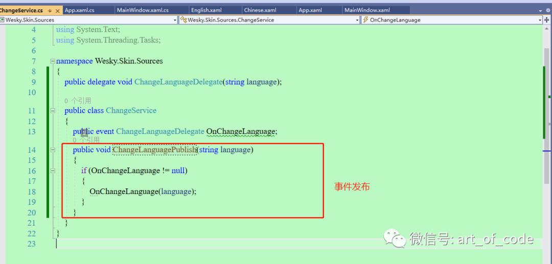 14、由于App.cs不适合直接实例化,也不适合写静态(资源非静态),所以写一个中间类,来实现委托进行消息传递。