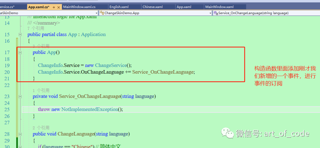 17、App构造函数内,实现实例化,以及事件的订阅声明。
