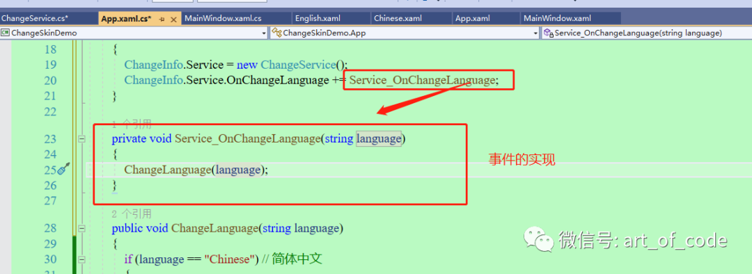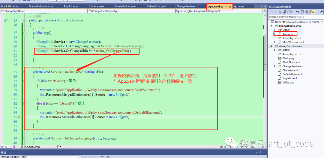 35、App.cs内进行订阅事件消息,以及实现皮肤资源更换。