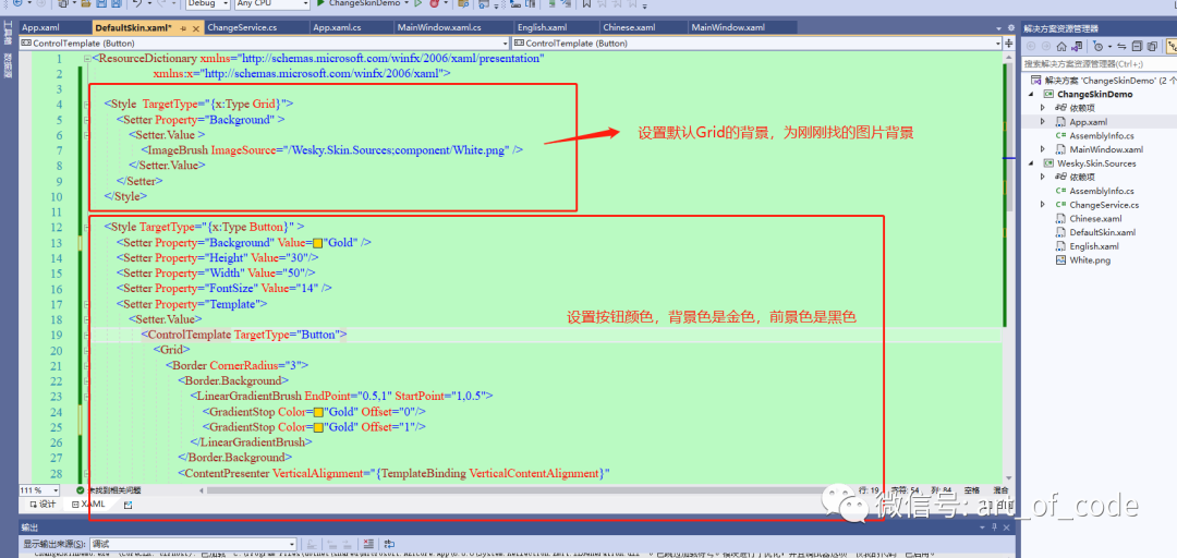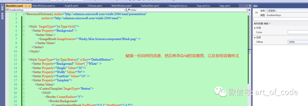 40、以上就是该文章的全部内容。如果需要源码的,可以扫描以下二维码关注我的微信公众号(或者直接搜索 Dotnet Dancer),在公众号聊天界面输入 【skin】 即可获取。