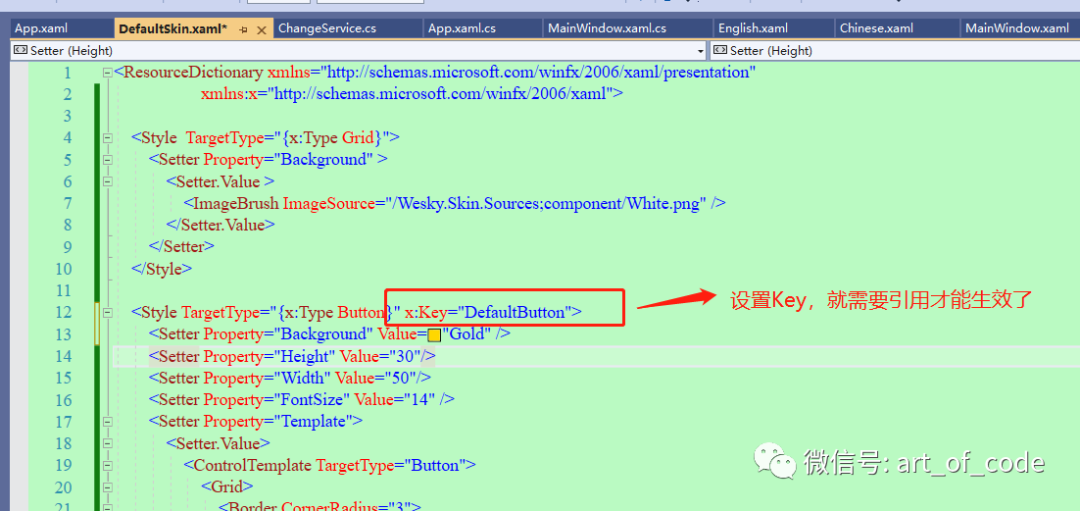 29、修改Button为需要指定资源进行绑定,这样可以配置多组不同的按钮,或者指定使用哪种风格等。例如,还可以写很多组不同样式的button,设置key不一样就可以。然后按照个人喜欢进行引用。此处就不做太多啰嗦操作了,说正事。