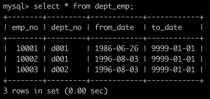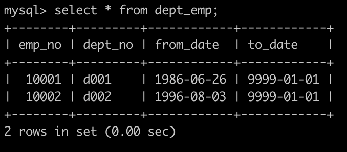 PRIMARY KEY (`emp_no`,`dept_no`));