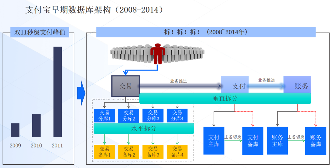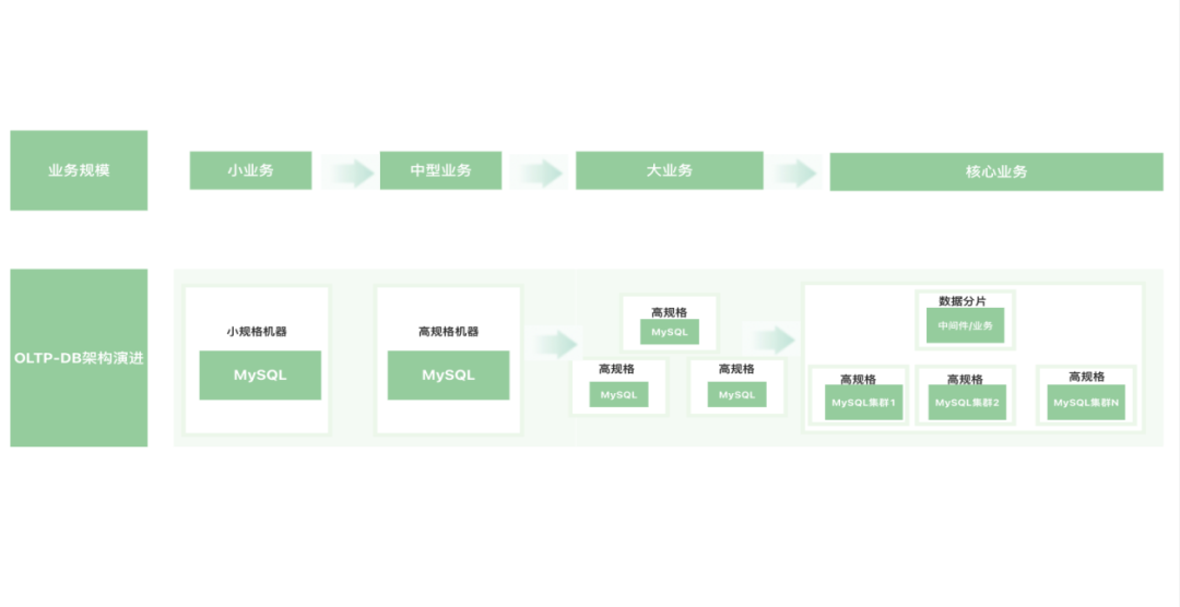 传统的单机关系型数据库,MySQL、PostgreSQL,面对海量的数据和并发常见方式只有两种,“加”和“拆”,加就是升级CPU、磁盘、内存,单机规模提高;拆就是读写分离、分库分表。这些是基于上一个时代的策略,缺点也很明显,成本不友好,资源浪费;再者对开发和运维的负担过大,分库分表、数据量级治理、资源瓶颈扩容、业务拆分,每次资源扩容工作量极大。业务规模从MySQL到小规机器格到高规格分库分表。到了下一代云上PaaS数据库,相当于直接把数据库搬到云上方便使用。2019年AWS发布的RDS,云上RDS的缺点是不能发挥云的优势,利用率低,且维护成本高,本质上是厂商帮用户维护了一个MySQL;不过,RDS是多可用区部署,可以解决多地域部署的问题。下一阶段的云原生数据库,核心特性包括资源池化(资源的时分复用,大体量下的成本节约)、弹性(业务按需付费和无缝扩缩容)。代表产品有OceanBase、PolarDB、TiDB、Amazon Aurora以及snowflake。早期Google产品Spanner,无限弹性水平扩展,包括分布式事务支持,跨数据中心级别容灾,几台机器一个软件就可以搞定一个云原生数据库。这一类技术流派代表性主流产品有OceanBase、CockroachDB、TiDB等。