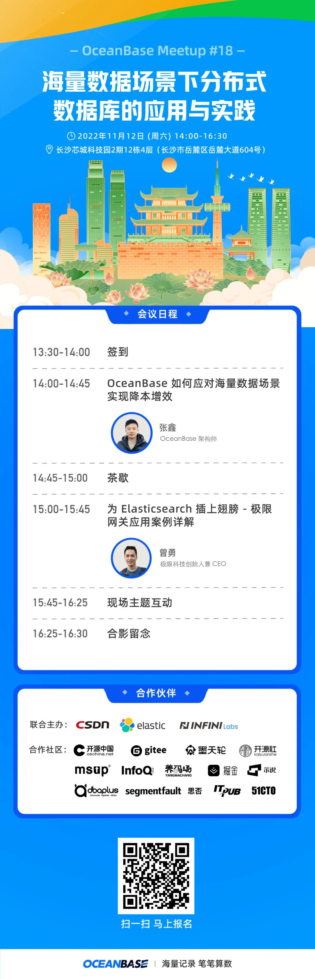 OceanBase 诞生之后,在支付宝经过了十年打磨,2014年支付宝的核心交易系统在 OceanBase 上线,2018年底,约有十万多套MySQL迁移,最新的进展还有100个非核心MySQL库待迁移,内部使用的一直是2.X版本;3.X更具有行业通用性质。马上与大家见面的4.0版本目前蚂蚁集团已经开始使用。OceanBase 现在目前最大规模达到数据节点1500➕,单个库6PB, QPS 6100W,这是经过核心场景验证的 OceanBase 可支撑能力。OceanBase 现在承载了蚂蚁集团100%的核心业务,数千个应用程序,数百PB数据量,1000+DDL操作,300+天应用发布,支付宝和蚂蚁集团所有的数据都是在OceanBase上,每天都有海量的业务在跑,稳定性和场景的验证性是毋庸置疑的。上图是蚂蚁集团内部的LDC单元化部署架构,数据分三份,Gzone和Czoen和RZone。蚂蚁集团典型的支付宝是三地五中心架构,一个zone有20%的服务流量,如果在三点凌晨交易系统交易卡了几秒,是因为内部有混沌工程实验,其规模相当于突然爆破了一整个城市,导致整个城市机房不可用后OB高可用快速恢复。对于三地五中心场景,每个月都有真实的场景去演练进行效果验证。OceanBase 尽管已经在内部研发十年,但商业化的时间只有两年,金融方面,中国人寿、建行、工行、浦发银行、海底捞、理想、携程、星巴克等都是OceanBase 的用户。开源方面,OceanBase 300万行代码都是开源的,连接的用户33000家,客户包括快手、贝壳、携程、浦发银行等等,很多客户在使用OceanBase的时候,基本上是企业版和社区化一起用。OceanBase 的定义就是企业级原生分布式数据库,支持私有云部署。OceanBase 对于公有云,如果从RDS迁到 OceanBase 节省成本将超过30%。演讲最后,郑赫扬老师总结说,云原生大势所趋,是下一代的技术方向。云原生数据库为企业未来的资源池化+弹性+容灾等等提供了数据底座。数据库的云原生,核心思想与技术选型决定了产品核心特性。