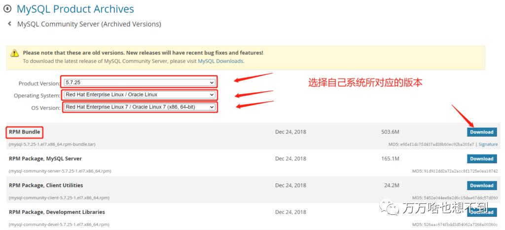 MySQL下载网址:https://downloads.mysql.com/archives/community/