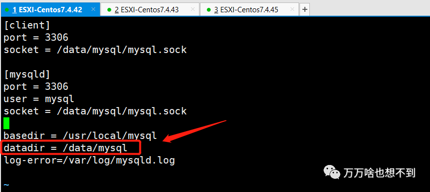 1.你的数据存放目录可能不是/data/mysql/,你可以通过vim /etc/my.cnf查看: