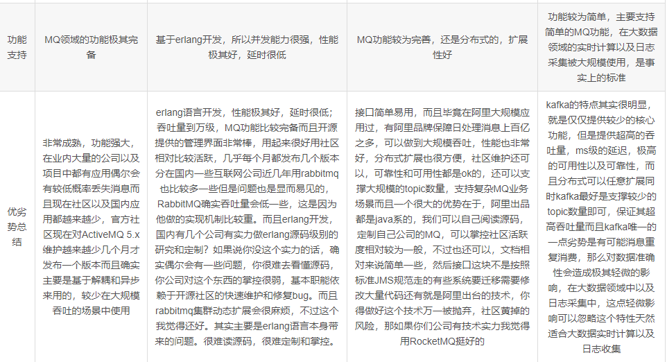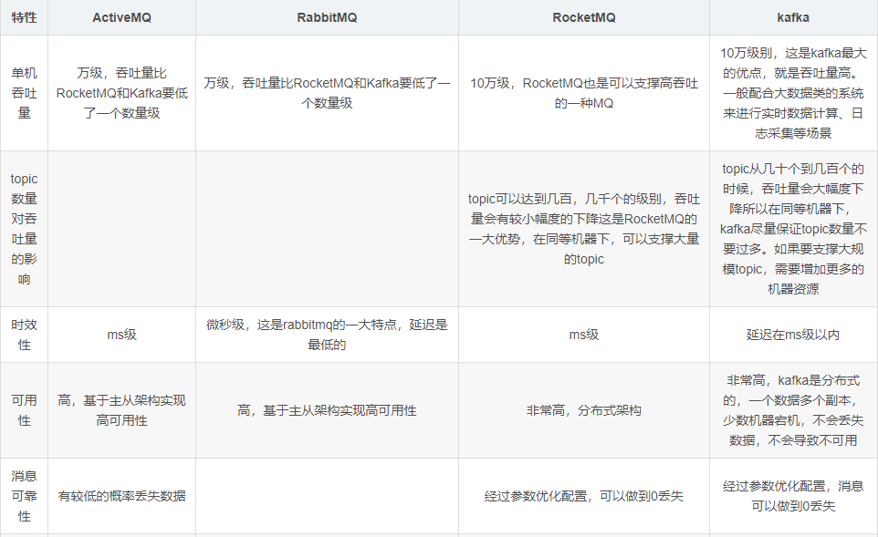 四大主流MQ(kafka、ActiveMQ、RabbitMQ、RocketMQ)各自的优缺点