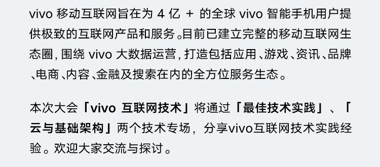 vivo 开发者大会是 vivo 一年一度面向科技、互联网行业及合作伙伴举办的大型会议。