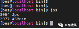 通过jps查看Java进程列表pid。如图所示能看到ASMain的pid为2977。
