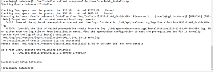 ./runInstaller -silent -responseFile /home/oracle/db_install.rsp