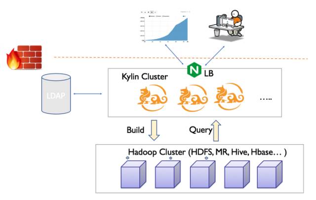 下图所示是Apache Kylin集群部署的架构图,本文将主要以Apache Kylin 1.6为例,介绍集群部署的详细步骤。