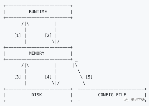 如果找到数据库文件(proxysql.db),ProxySQL 将从 proxysql.db 初始化其内存中配置。因此,磁盘被加载到 MEMORY 中,然后加载到 RUNTIME 中。
