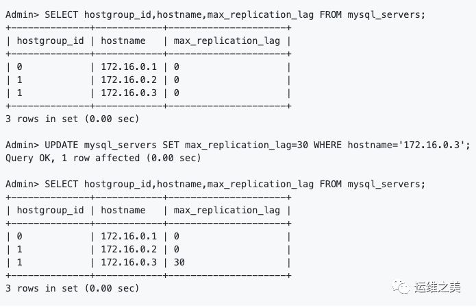 下图中,当172.16.0.3的复制延迟超过了30秒会自动回避,设置max_replication_lag = 0,代表不检查复制延迟 。