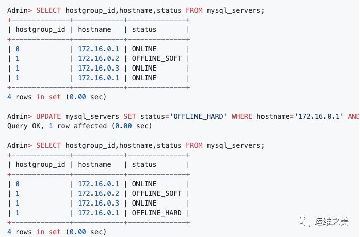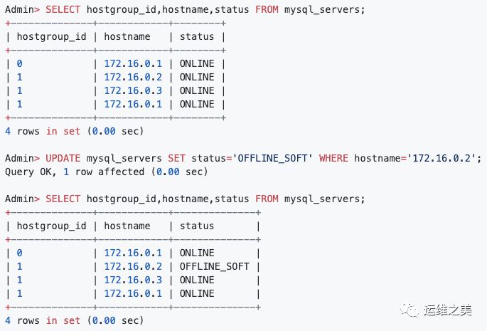 在运行时修改配置是通过 ProxySQL 的 MySQL 管理端口(默认为 6032)完成的。