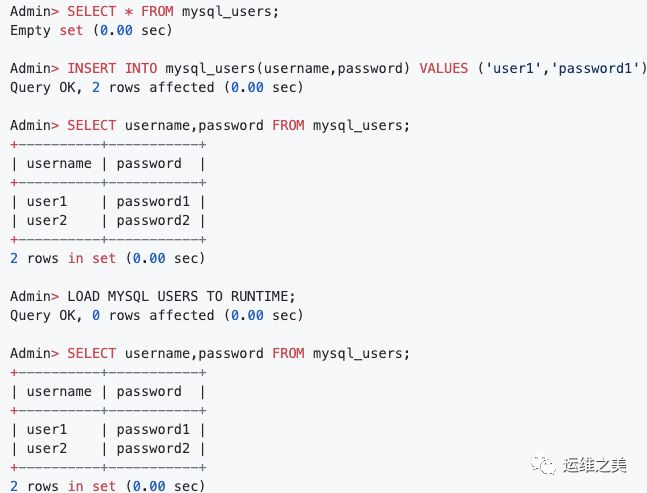 将 MySQL 用户从 MEMORY 加载到 RUNTIME 数据结构,反之亦然。