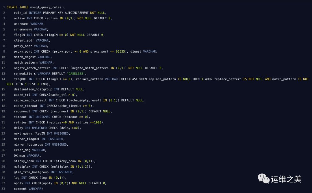 mysql_query_rules - 将流量路由到各种后端服务器时评估的查询规则列表。这些规则还可以重写查询,甚至可以缓存已执行查询的结果。