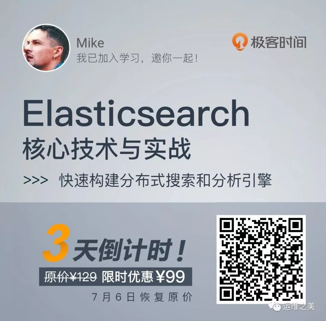 文末推荐:极客时间视频专栏 「Elasticsearch 核心技术与实战」,一共 95 讲,约 1000 分钟,更多专栏介绍可戳「这里」。如果你想快速构建分布式搜索和分析引擎,这个课程可以帮到你,该专栏刚上架已经有 8000+ 名同学在学习了。