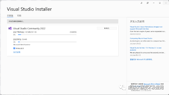 (5)在打开的窗体中等待Visual Studio安装完成;