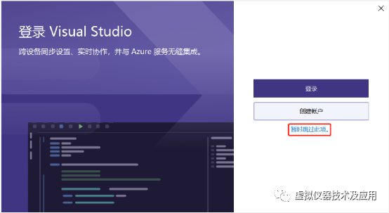 (1)首次Visual Studio时,将打开如下窗体,可选择“暂时跳过此项”;
