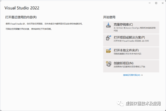 (3)下图为Visual Studio的启动界面,下次再次启动Visual Studio,都为此启动界面。