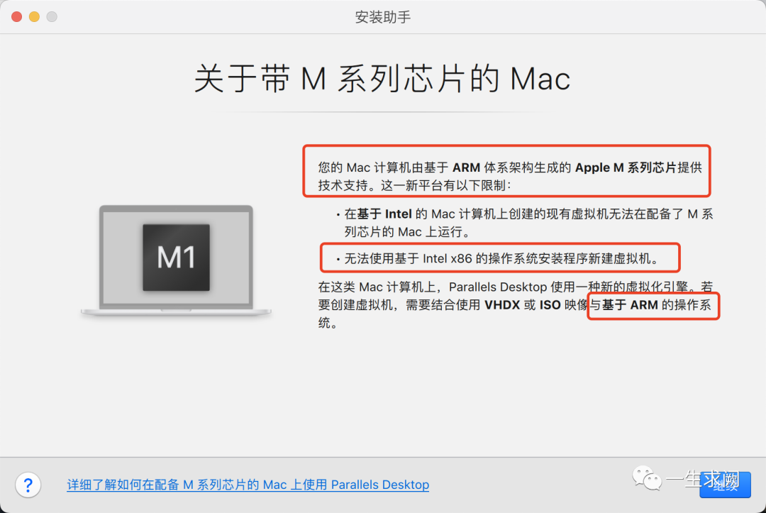 然后就看到这个,也就解释了为什么安装ubuntu一定要是arm架构的,点击继续按钮进入安装助手